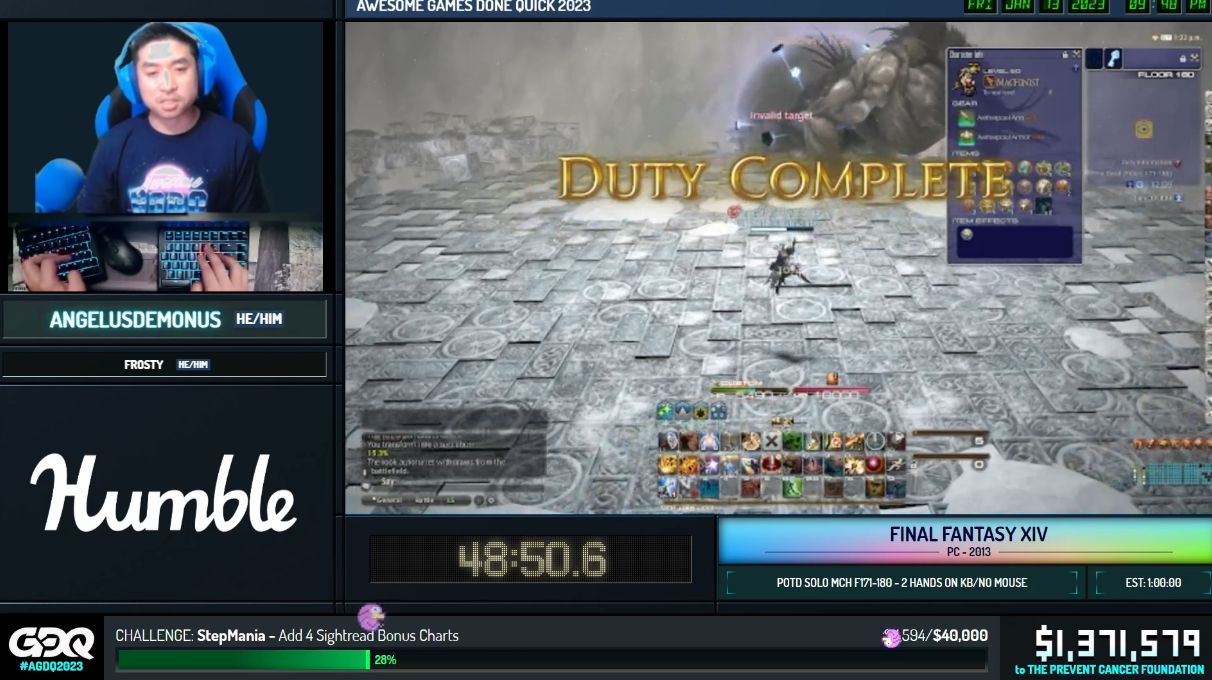 【FF14】世界最大級のRTAイベント「AGDQ202」の「死者の宮殿ソロRTA170-180」でAngelus氏が180階ボスを撃破しRTA成功!