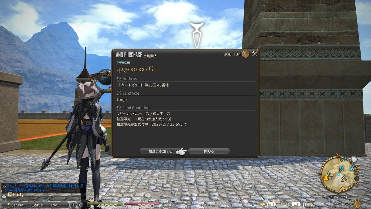 【FF14】これで当選したらめちゃくちゃ嬉しい!6.3土地の抽選販売3回目、Lサイズはゴブでも100件近い応募があり激戦区に