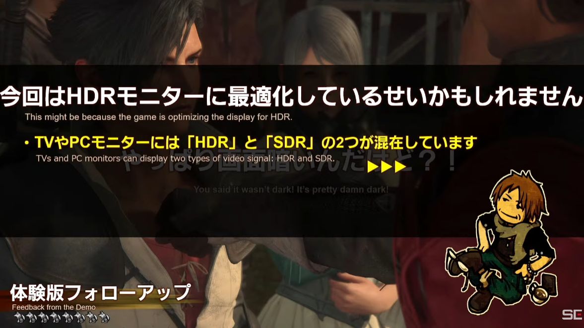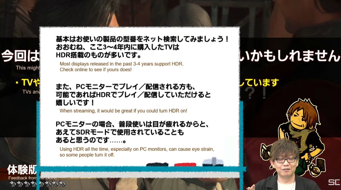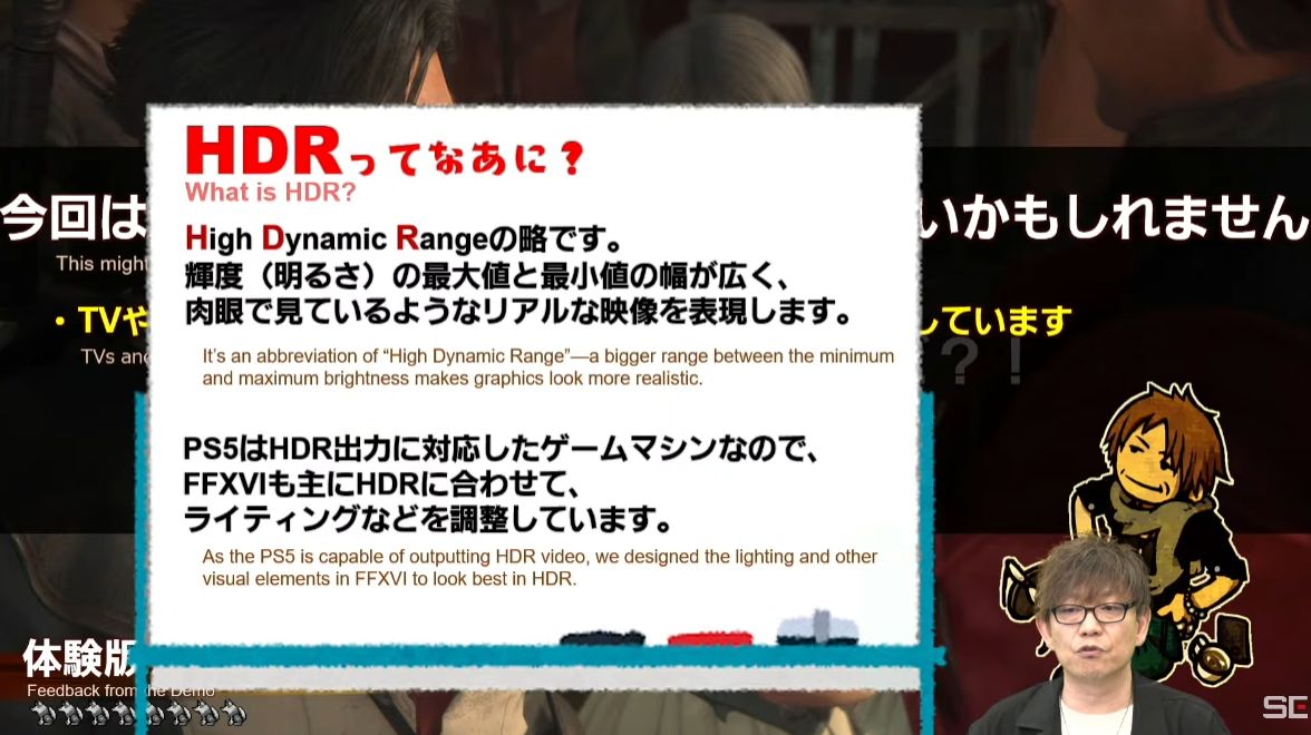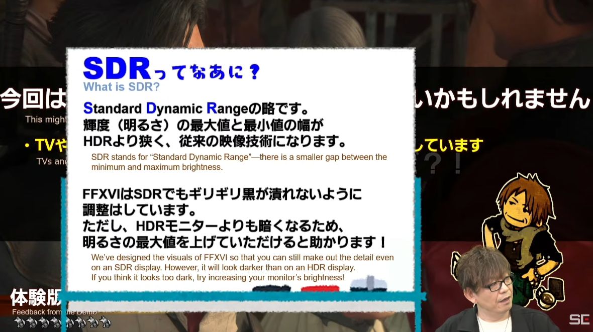 吉田P、「FF16生放送」で画面が暗いという人にモニタの「HDR」「SDR」を超丁寧に解説して絶賛される「家電店員かな?」「なぜFF14が立て直し出来たのかようやく判った」