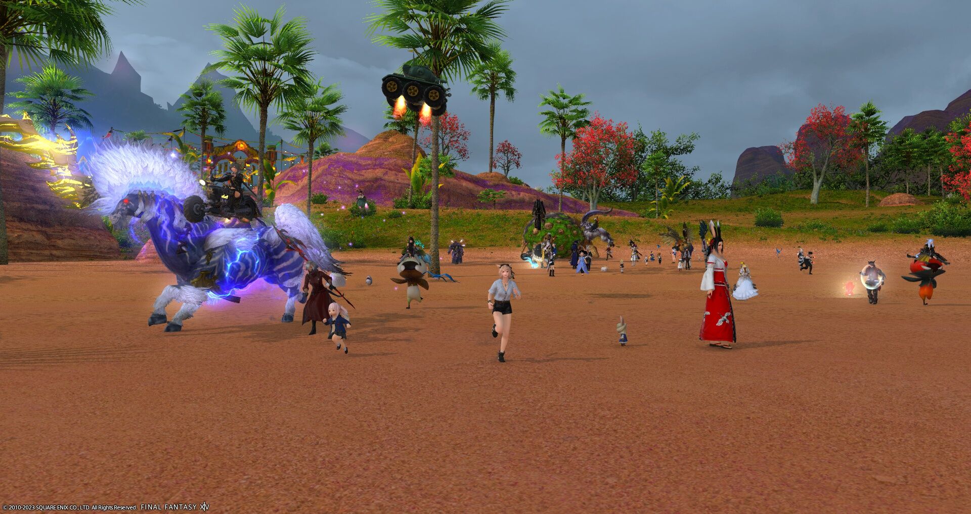 「FFXIVモバイル」に実装されたココナッツマウント、染色で西瓜になることが判明。さらにマウントに寝そべるエモやバハムートの翼のファッションアクセが追加