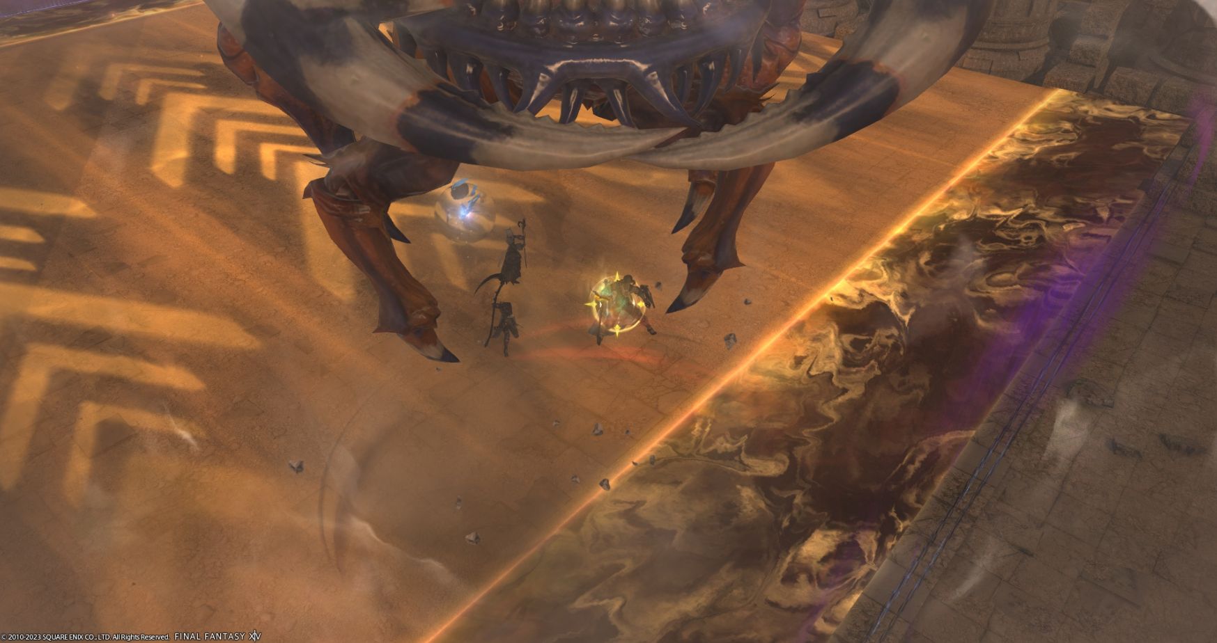 【FF14】6.5ID「月の地下渓谷」2ボスのアントリオンマーチ(直線範囲+柱落下)の楽な避け方を教えてください!