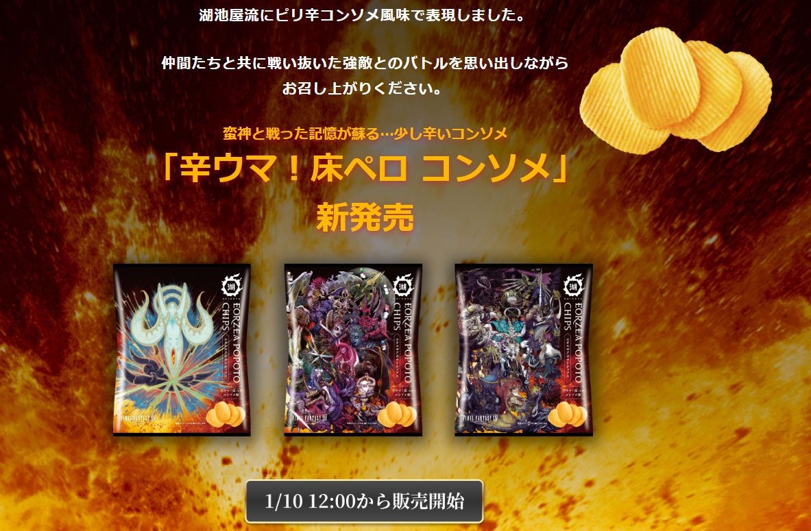湖池屋×FF14コラボ第2弾「エオルゼアポポトチップス 辛ウマ!床ペロコンソメ味」が発売決定!