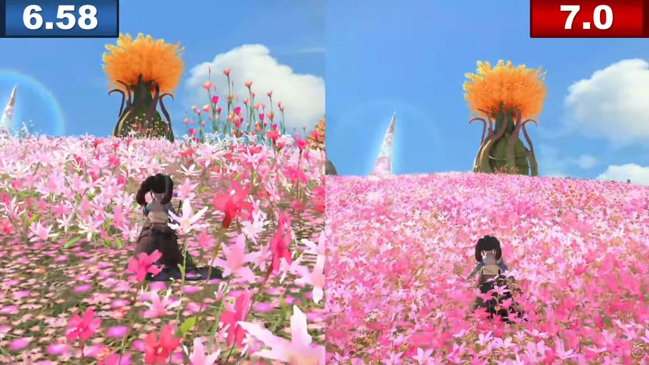 【FF14】キャラが隠れるレベルの花の量!7.0グラフィックスアップデート後の「イル・メグ」の変化が凄すぎると話題に!