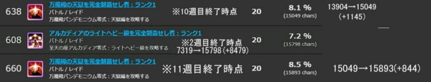 2週目終了時点の踏破数は、15798キャラの7.2%となりました