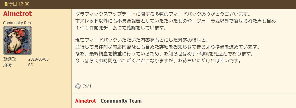 グラフィックスアップデートに関する多数のフィードバックありがとうございます。