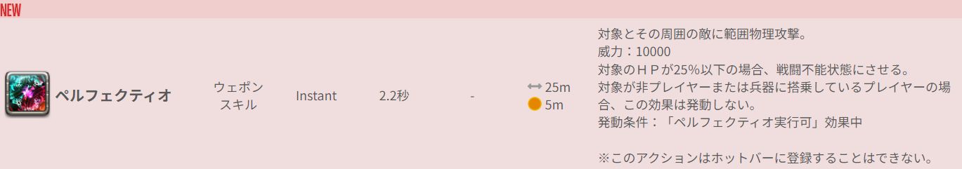 ◆PvPスキルの「ペルフェクティオ」は対象のHPが25%以下の場合、戦闘不能状態にさせるというとんでも効果