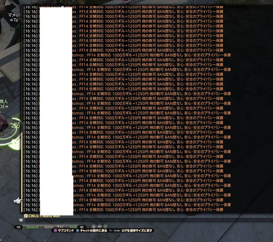 アカウント乗っ取りされてRMTシャウトを色々なサーバーのリムサで叫んでるの怖い