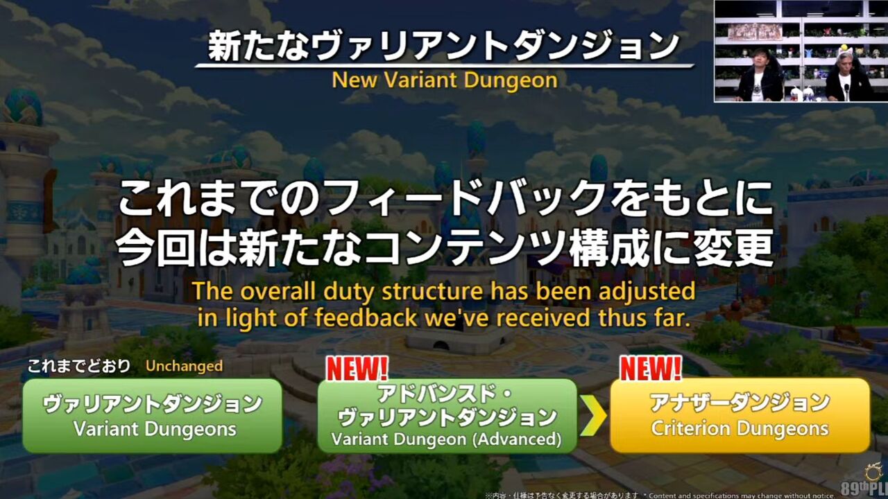 ◆パッチ7.4実装のヴァリアントダンジョンか新たなコンテンツ構成に変更