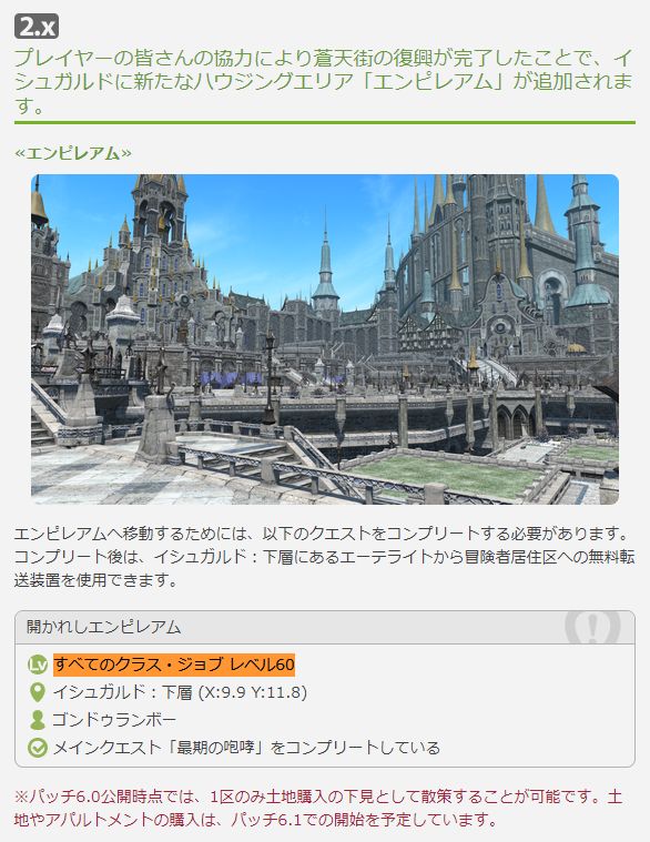 【FF14】いずれかのジョブではなく全ジョブ?イシュガルドハウジングエリア「エンピレアム」の開放条件が「すべてのクラス・ジョブレベル60」になっていると話題に